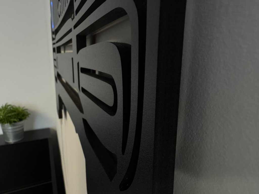 Stačí přichytit na zeď pomocí přibalené hmoždinky a vrutu. Díky zavěšovacímu mechanismu a krytům diod je silueta vzdálena přibližně 1 cm od stěny.